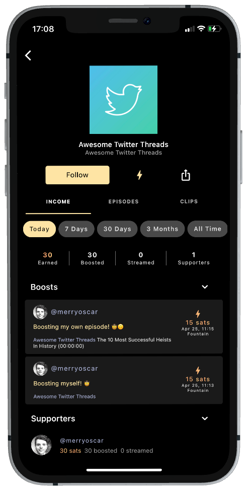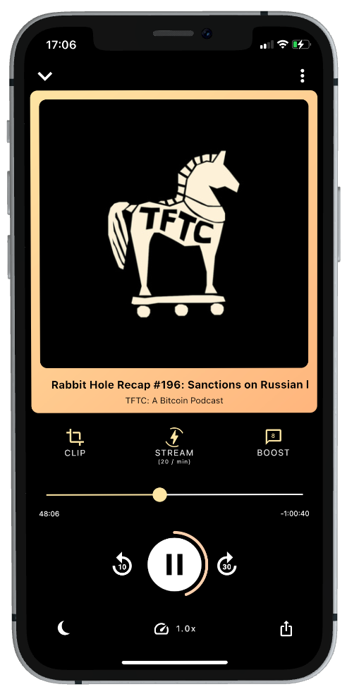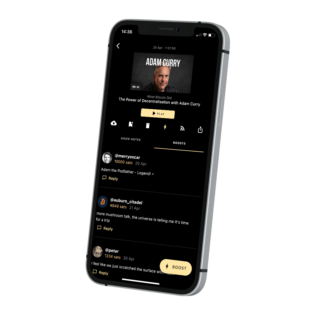 Deposit sats from any Bitcoin Lightning wallet and you're ready to start supporting podcasts. You can stream sats for every minute you listen or send a Boost (a payment with a message).